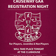 REMINDER GAA REGISTRATION NIGHTfor Players and all Juveniles and non playersGAA membershi...