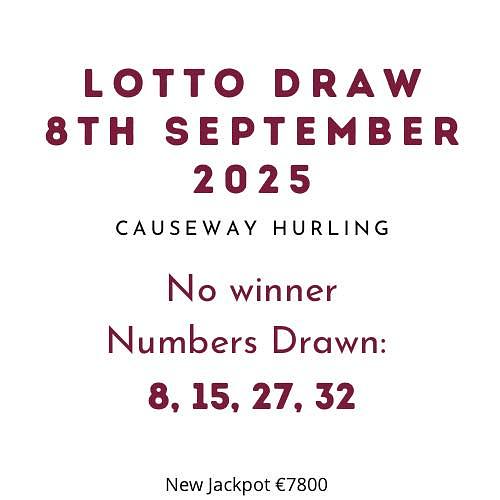 Take part in Causeway GAA lotto by purchasing your tickets in Kellihers Hardware Tralee, Hartys Bar, The Forge Cafe & Hanley’s Shop.