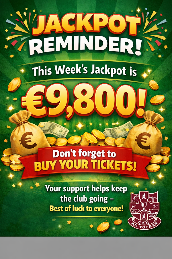 Don’t miss your chance the Causeway GAA lotto jackpot is a massive €9,800 this week 🇶🇦🇶🇦