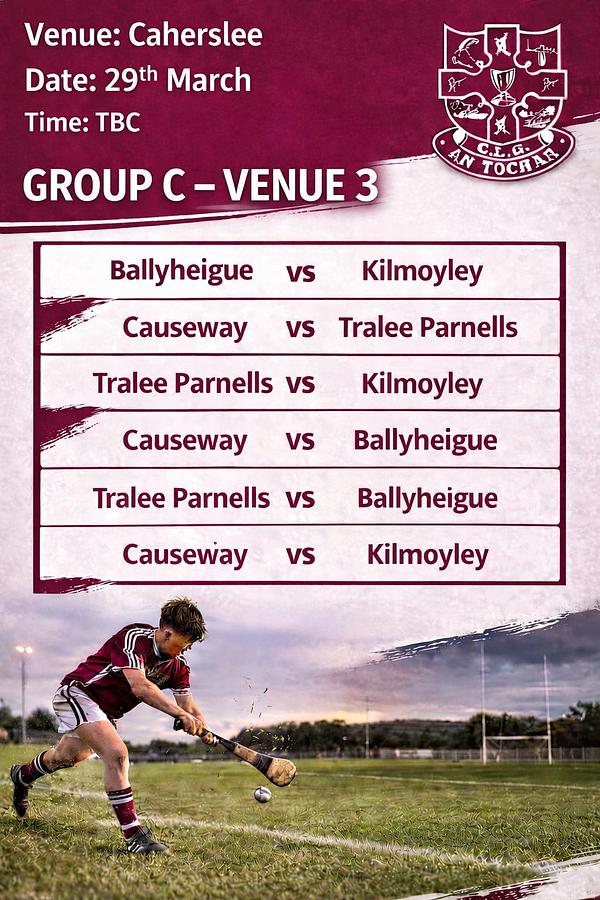 Causeway will compete in Group C of the upcoming Feile blitz taking place in Caherslee on Saturday, 29th March. Throw-in times are TBC.